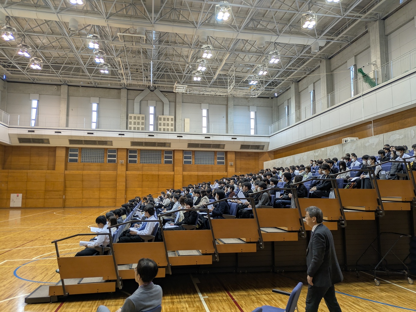 また、新しい教科書を受け取り、その重みを実感するとともに、新入生課題の説明では気持ちを引き締めて話を聞く生徒の姿が見られました。