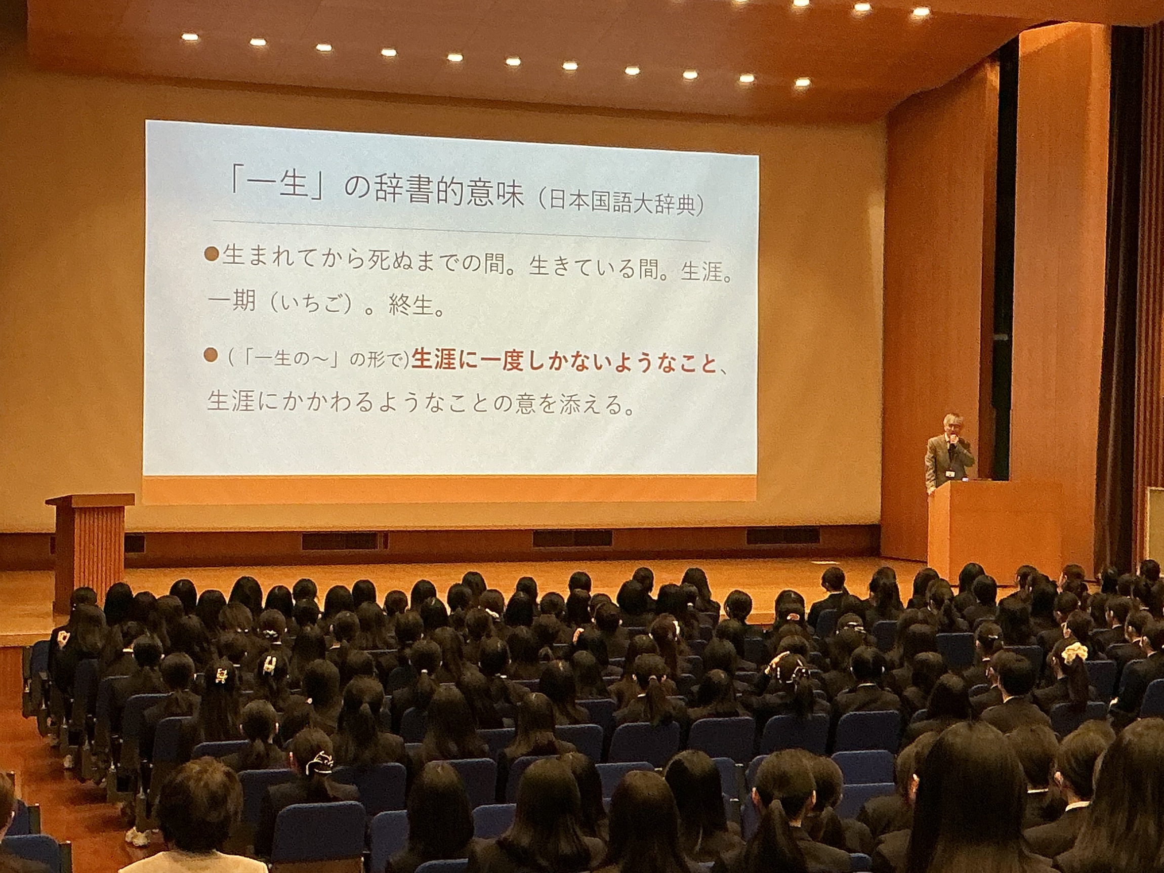 今回の校長先生のお話は、「一所懸命」について。もとは鎌倉武士が自分の所領を命がけで守ることを意味する言葉でしたが、時代が下るにつれて、「一生懸命」とも表記されるようになりました。現代において、「一生」をどう捉えるべきでしょうか。「一生」には、もちろん一生涯という意味もありますが、生涯で一度しかないようなことという意味もあります。今、この瞬間も「一生」なのです。クラブ活動でも、勉強でも、大切な人とのふれあいでも、今この瞬間を大切に、「一生懸命」に頑張ることは大切なこと。近年は、一部に、一生懸命に頑張ることを冷ややかに見る風潮もありますが、やはりそれはよくない。一生懸命を大切にしてほしい、という校長先生からのメッセージでした。