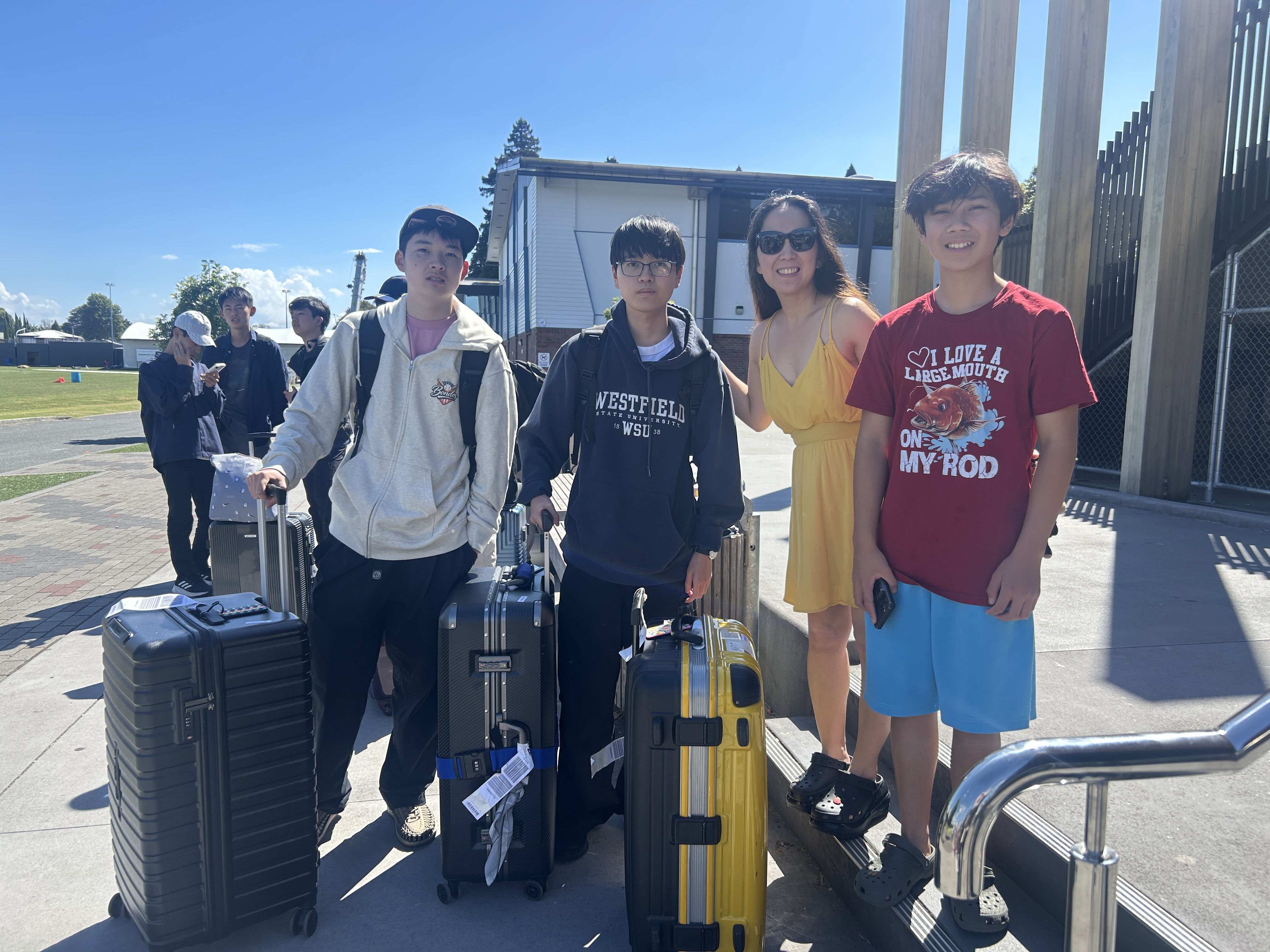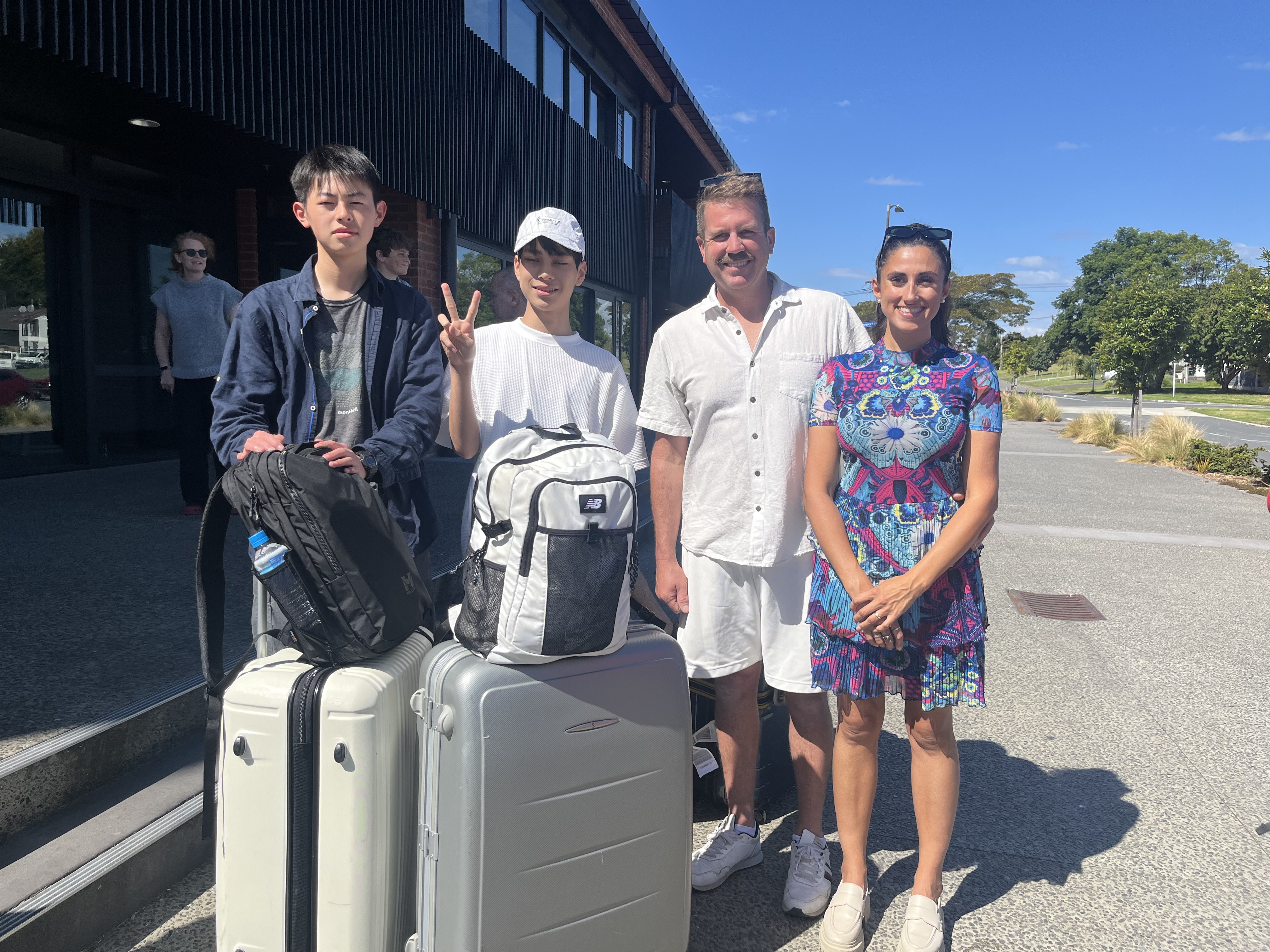 成田空港から10時間のフライトを終え、オークランド空港からシャトルバスに乗り、研修を行うタウランガボーイズカレッジへ到着しました。そこには2週間お世話になるホストファミリーが迎えに来るので、そこからいよいよホームステイ生活が始まります。少し緊張した面持ちでしたが、挨拶を交わすとすぐに笑顔に変わっていました。初日は土曜日で休日、出会ったばかりのファミリーとの週末を楽しみます。
