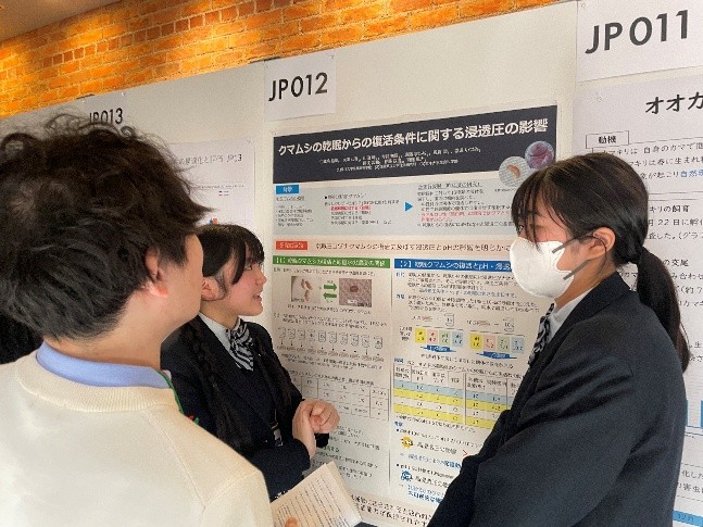 今年度は「クマムシの乾眠からの復活条件に関する浸透圧の影響」という表題で7名の生徒が参加しました。