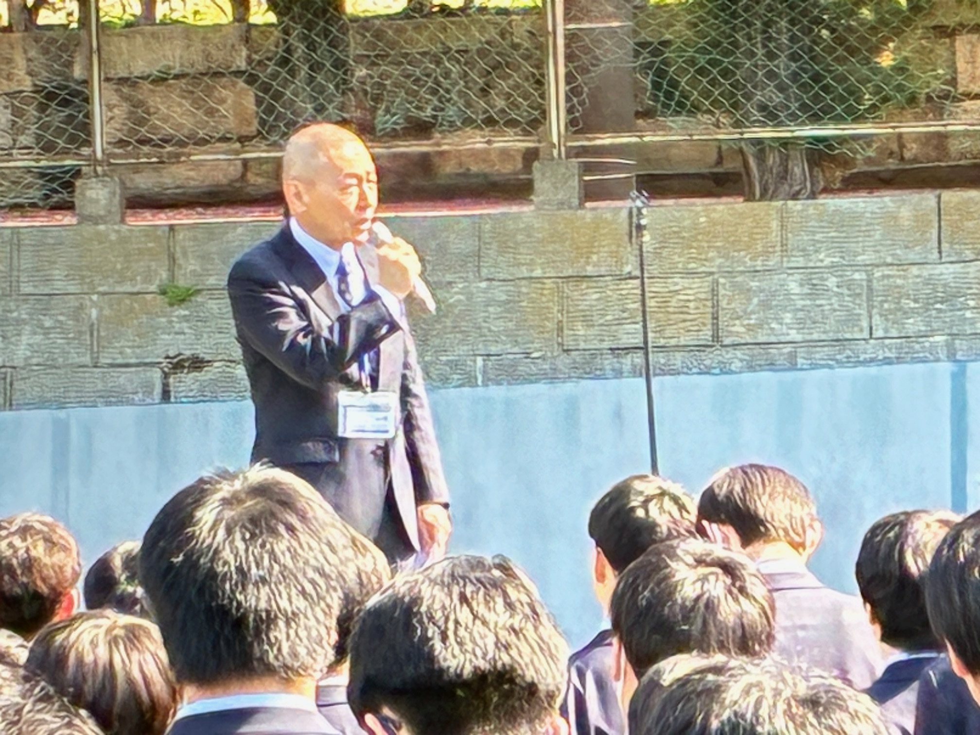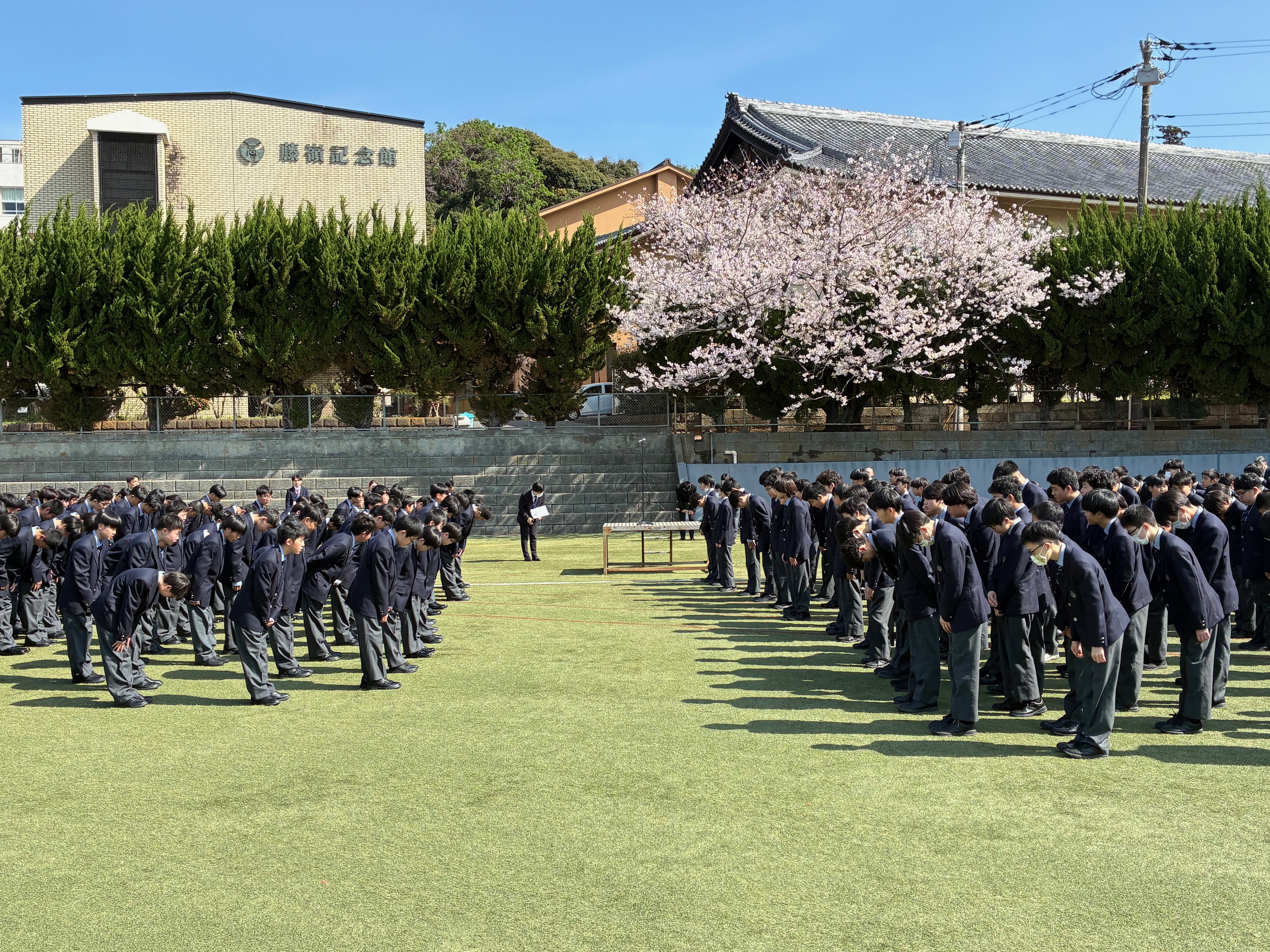 本日、春らしい穏やかな晴天のもと、サブグラウンドにて始業式が行われ、新しい学年での学校生活がスタートしました。