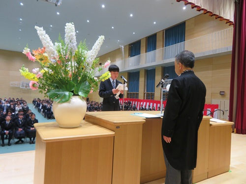 新入生代表の挨拶では、これから始まる中学校生活への抱負や、これまで育ててくれたご家族への感謝の言葉など、力強い言葉が述べられました。
