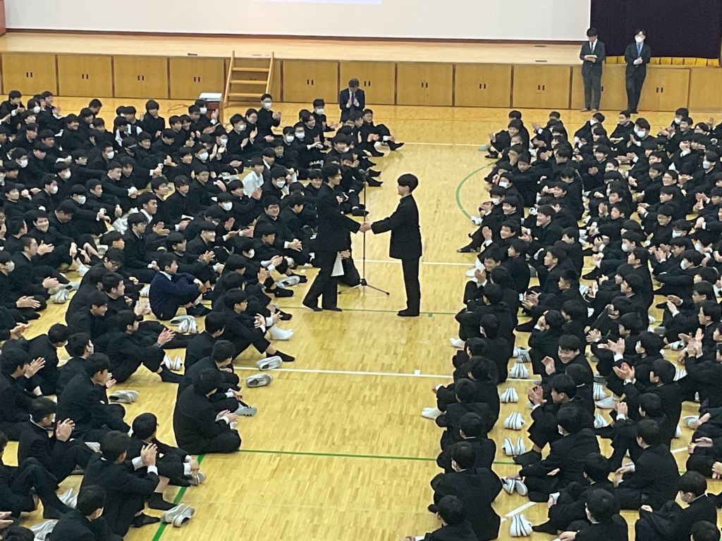 についてのお話があり、生徒たちは真剣な表情で耳を傾けていました。