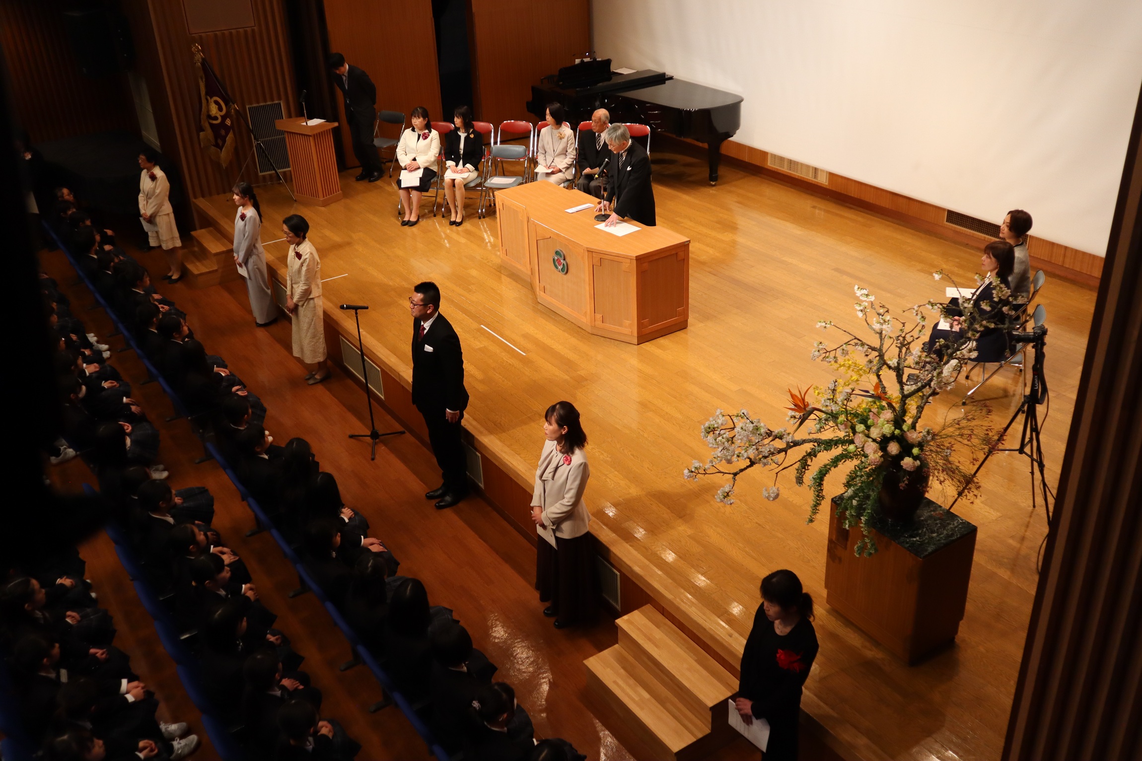 4月8日(水)、中学入学式をおこないました。桜もほんの少しではありますが、入学式を待ってくれていたようです。