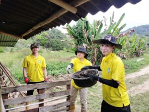 日中、子供たちは学校へ行っている間、私たちはワークを行います。私が参加した第77回では養豚場の土の入れ替えを行いました。土を10年近く変えておらず、養分が無くなったそうです。そこで土を入れ替え、セメントで固めました。この養豚場は子供の家の子たちが将来働ける場所の1つとしてあるそうです。また、ここでは農薬をあまり使わず、健康によい豚を育てています。ワークを通し、私は協力して目標に向かう楽しさ、仲間の大切さを改めて実感しました。ワークは私が思っていたよりも体力、力が必要で最初はあったはずのやる気も疲れと暑さですぐ無くなりました。しかし、同じチームのキャンパーがboleh(がんばれ)など声を出し、人一倍がんばっているのをみて私も頑張ろうと思えるようになりました。私は大声を出す元気は最後までありませんでしたが、一日のワークが終わった時、疲れたより先にもう少しでおわりそうや楽しかったなど達成感を感じるようになりました。それは初日のやる気のない感情より何倍も気持ちの良いものでした。