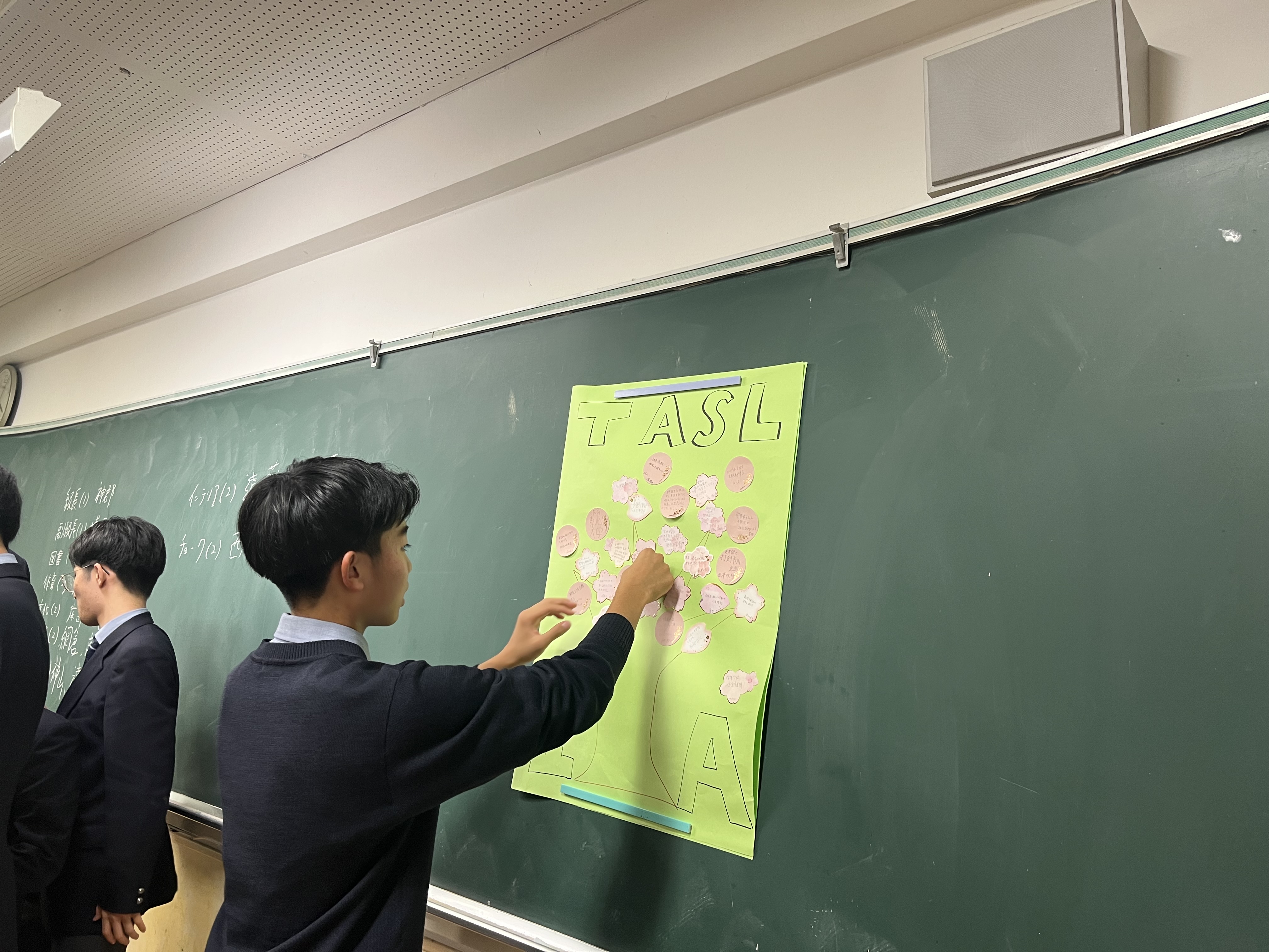 先日、高校1年生放課後学習(TASL)のガイダンスが行われ、学習メンターよりプログラムの活用方法やサポート内容についての説明がありました。またメンターとの交流タイムの最後には、生徒ひとりひとりが、放課後学習でメンターのサポートを得ながら実現したい学習目標をカードに書き、クラスごとに掲示を行いました。目標を実現できるよう、新入生には積極的に活用してもらい、充実した高校生活を過ごして欲しいと思います。